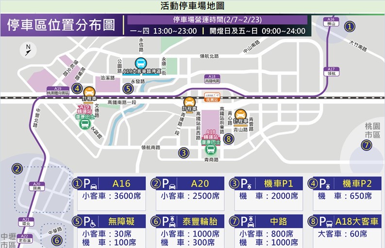 ○ 停車資訊:若自行開車,建議將車輛停放於機捷A16站或A20站附近的大型免費停車場,然後轉乘機捷前往燈會現場。